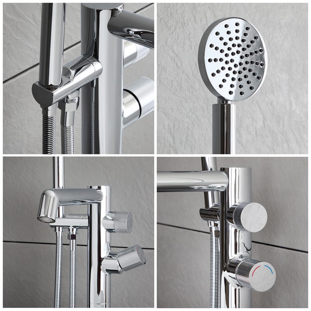 Crea uno splendido look moderno con il miscelatore termostatico per vasca freestanding della gamma Lune, completo di doccetta.