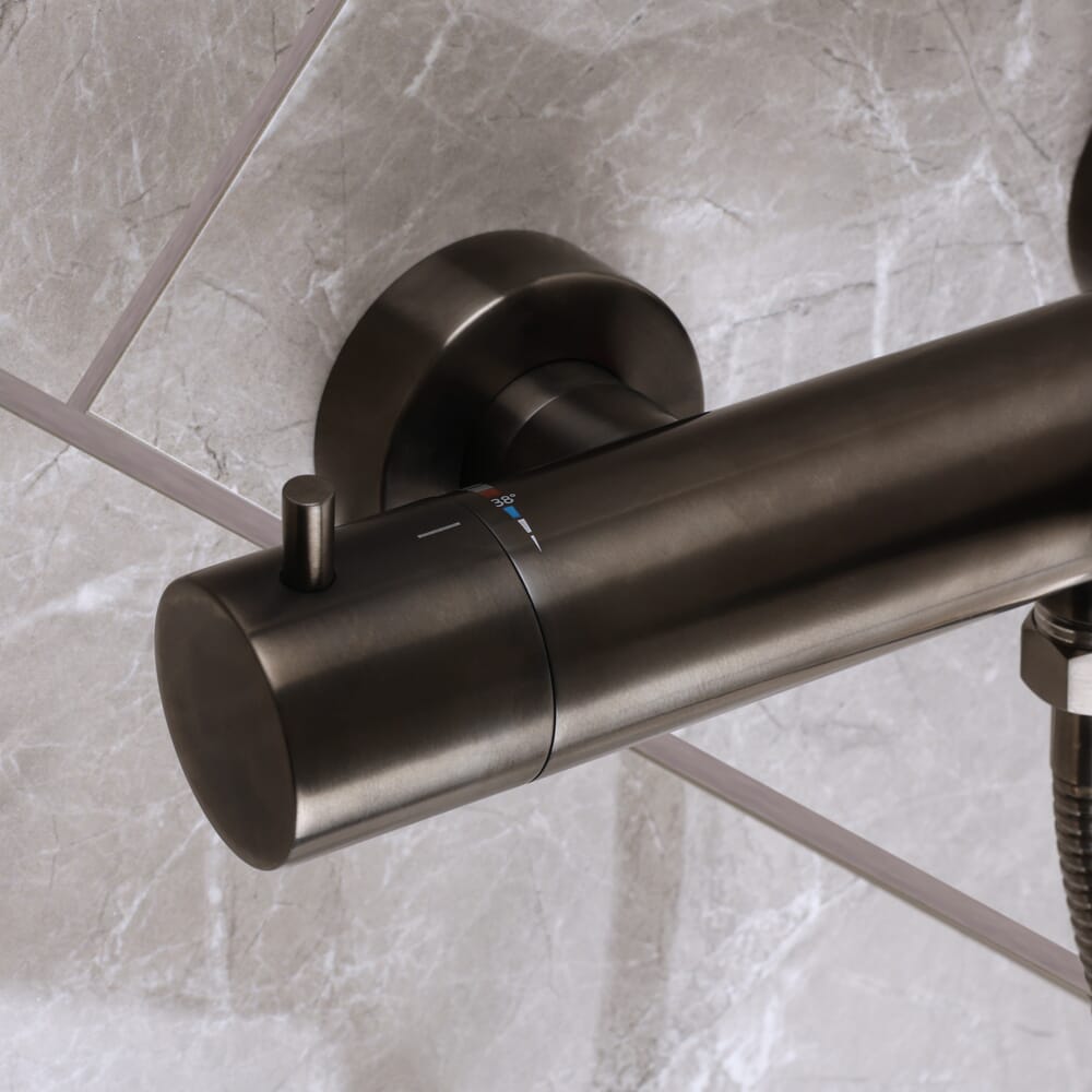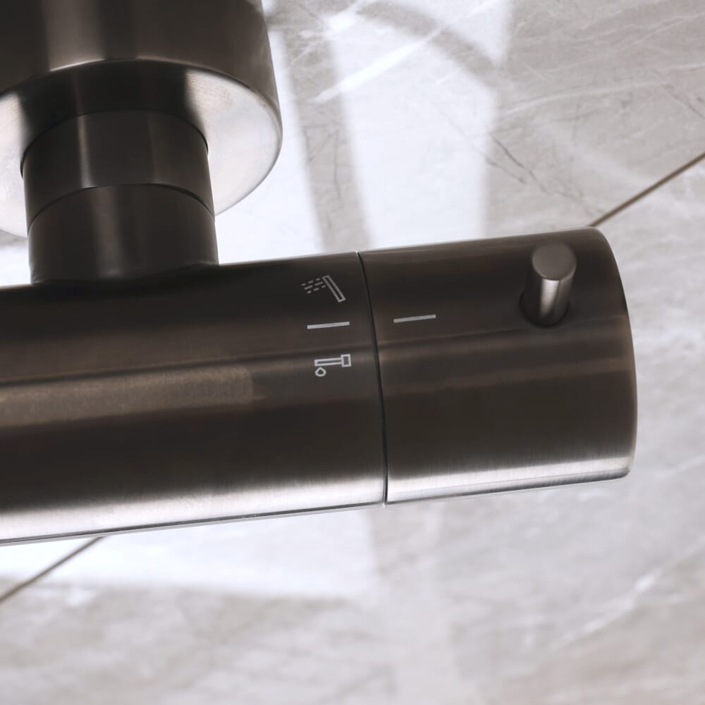 Il miscelatore termostatico per doccia della gamma Otto in nichel nero porterà un tocco contemporaneo al tuo bagno.