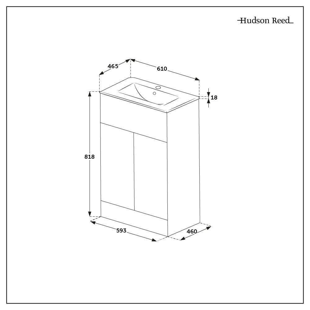 - Dimensioni del Lavabo: L 610 mm x P 465 mm x H 18 mm
