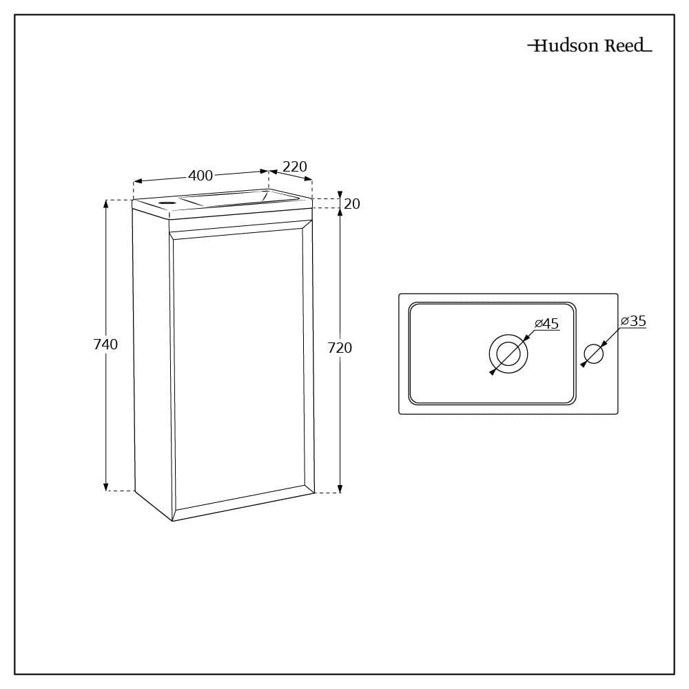 - Dimensioni del Lavabo: L 400 mm x P 220 mm x H 20 mm
