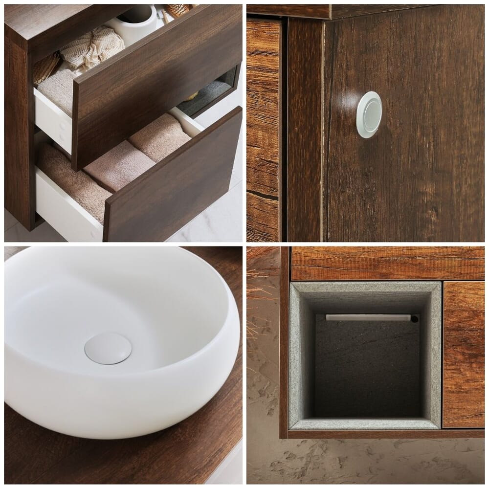 Crea un'oasi di calma e porta spazio nel tuo bagno con il mobile sospeso Hoxton da 800 mm, completo di lavabo da appoggio della gamma Elements.