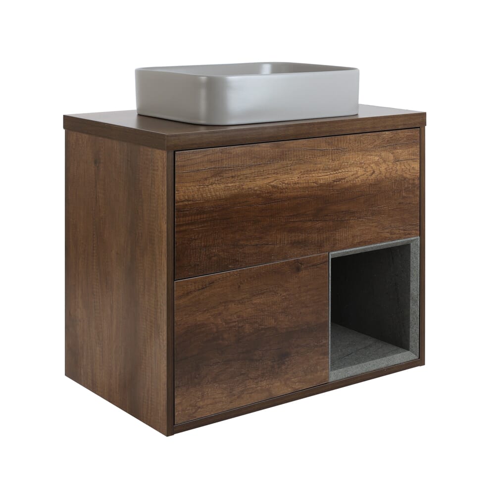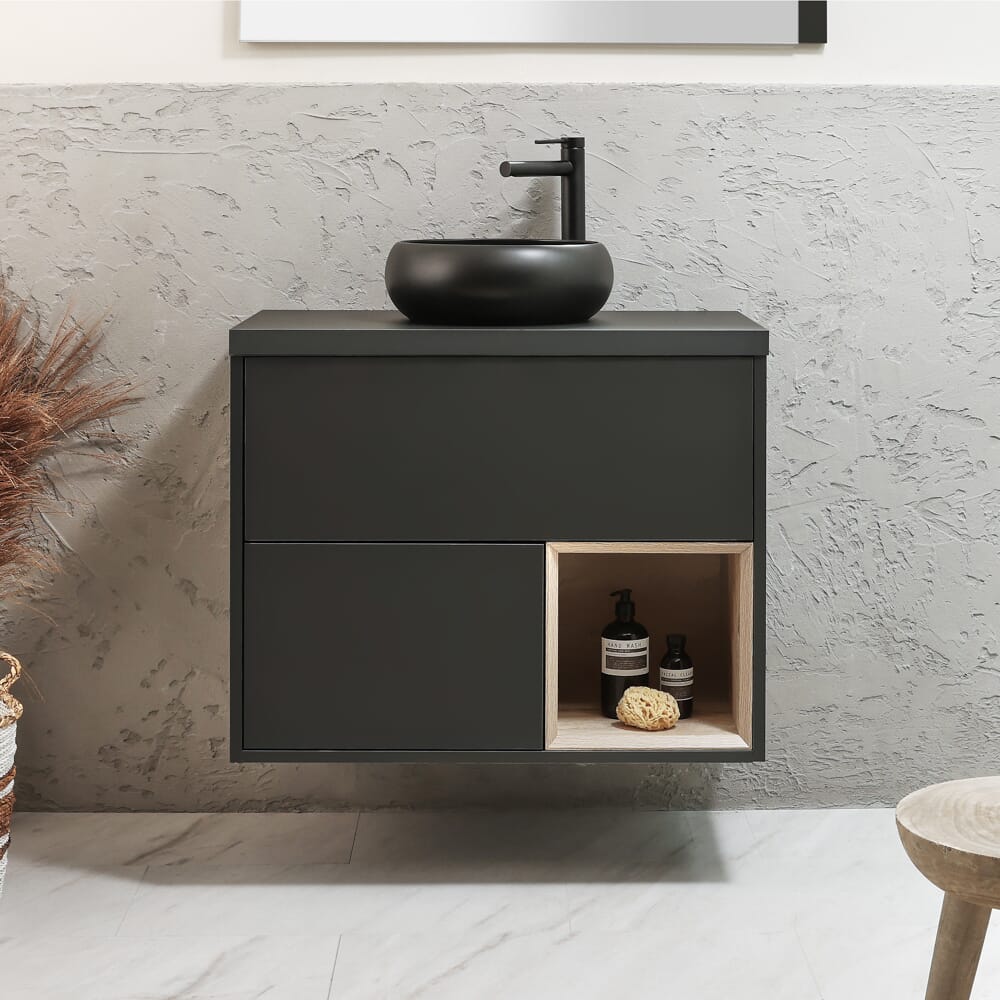 Mobile Bagno Sospeso con Ripiano Aperto da 800mm con Lavabo d' Appoggio Elements - Scelta di Lavabo, Finiture e Luci LED - Hoxton