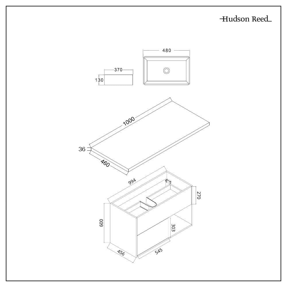 Mobile Bagno Sospeso con Ripiano Aperto e Lavabo da 1000mm - Scelta di Finiture, Lavabo e Luci LED - Hoxton