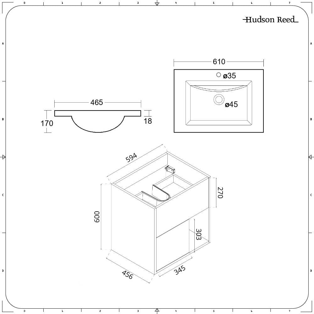 - Dimensioni del mobile bagno: L 600mm x P 465mm x A 618mm