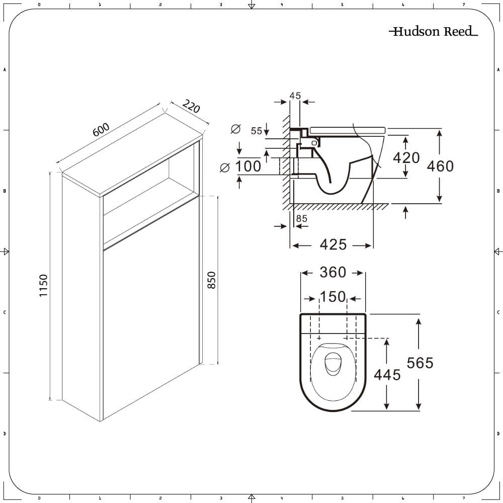 - Dimensioni del mobile WC: L 600mm x P 220mm x A 1150mm