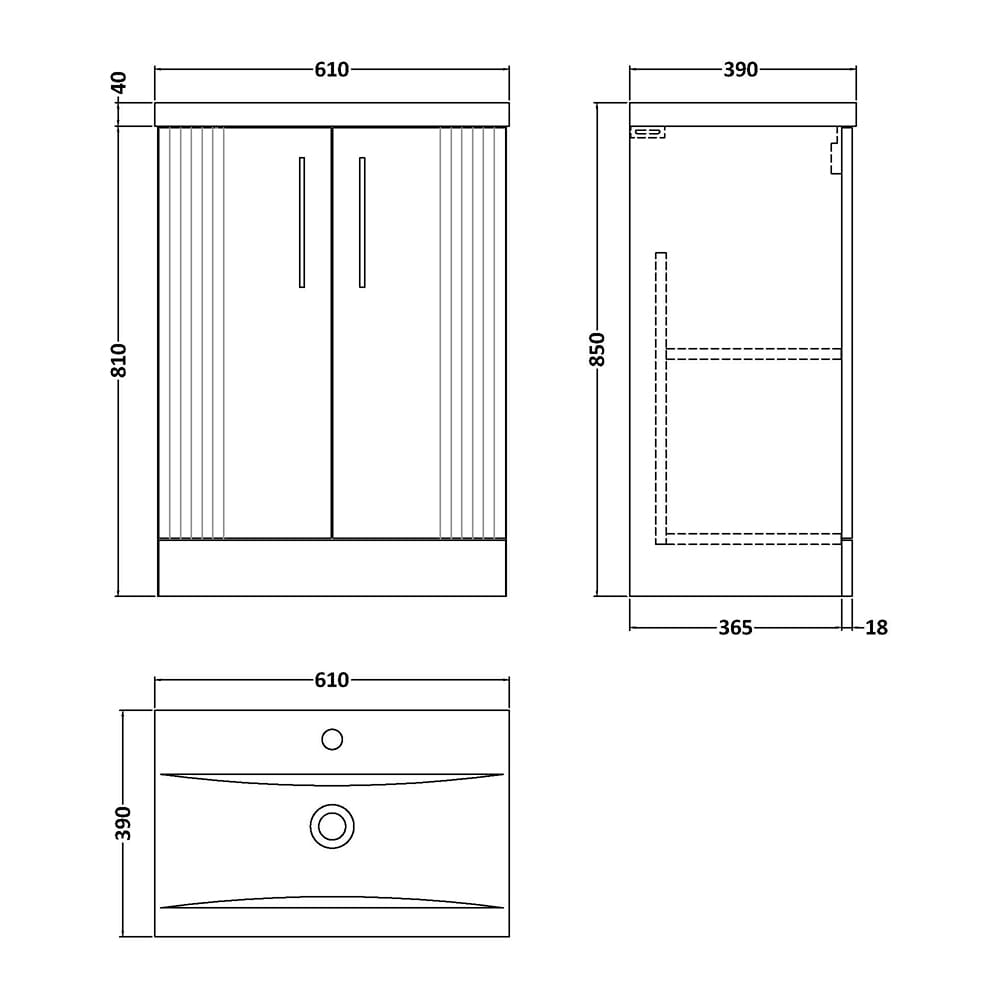Mobile da Bagno Scanalato a Terra con Lavabo 600mm - Scelta della Finitura