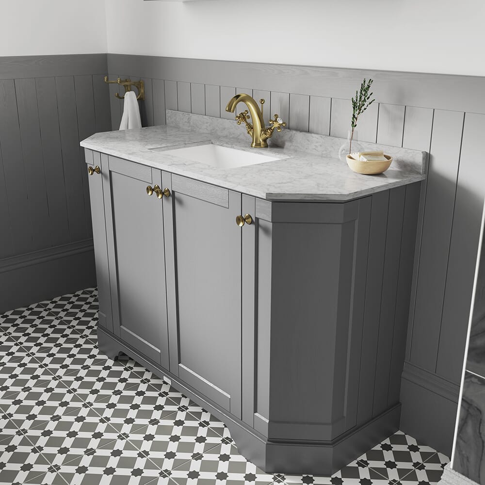 Mobile da Bagno Tradizionale Angolare con Piano in Marmo Grigio 1020mm - Scelta della Finitura e del Lavabo - Old London