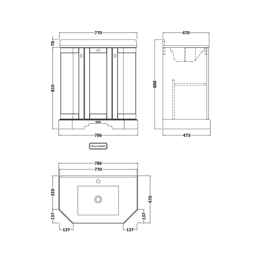 Il mobile Old London è disponibile in una scelta di finiture lussuose per il tuo bagno da sogno. È inoltre possibile scegliere tra un lavabo a uno o tre fori per la rubinetteria, semplicemente selezionando le opzioni in alto.