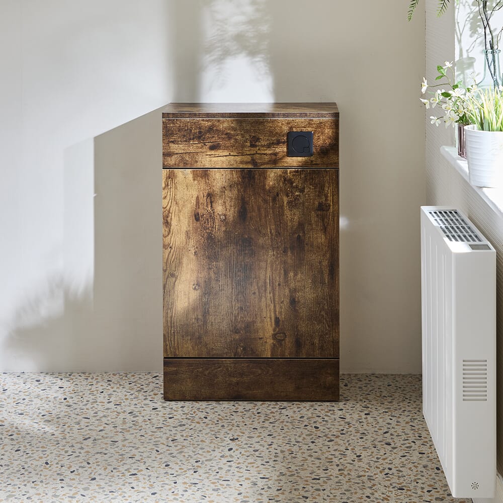 Rinnova il tuo bagno e crea un look elegante e moderno con il mobile WC della gamma Cluo da 500 mm, completo di cassetta a doppio scarico a risparmio idrico.