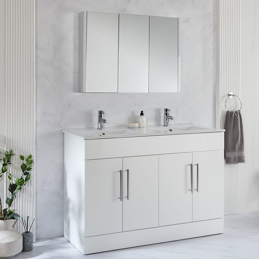 - Costruzione in legno ingegnerizzato resistente all'umidità con finitura bianca lucida