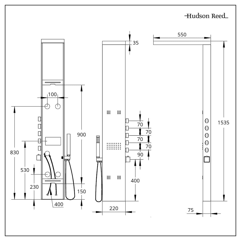 Pannello Doccia Termostatico con Soffione, Doccetta e Idrogetti - Grigio Canna da Ficile - Select