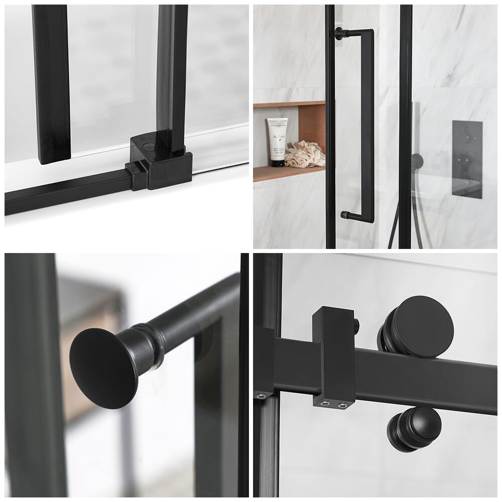 Parete Vasca Doccia Scorrevole Senza Cornice - Profilo Nero - Nox