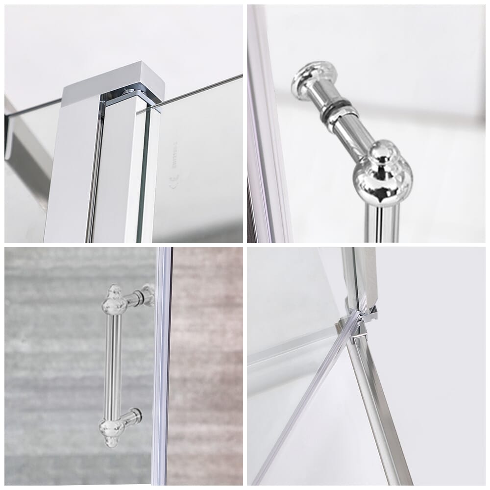 Con un design senza cornice per migliorare il senso dello spazio e una tradizionale maniglia cromata per un tocco classico, questa porta doccia battente utilizza un vetro temperato da 6mm per un'eccellente resistenza e durabilità. Misura 1950mm di altezza, contribuendo a contenere più schizzi della doccia.