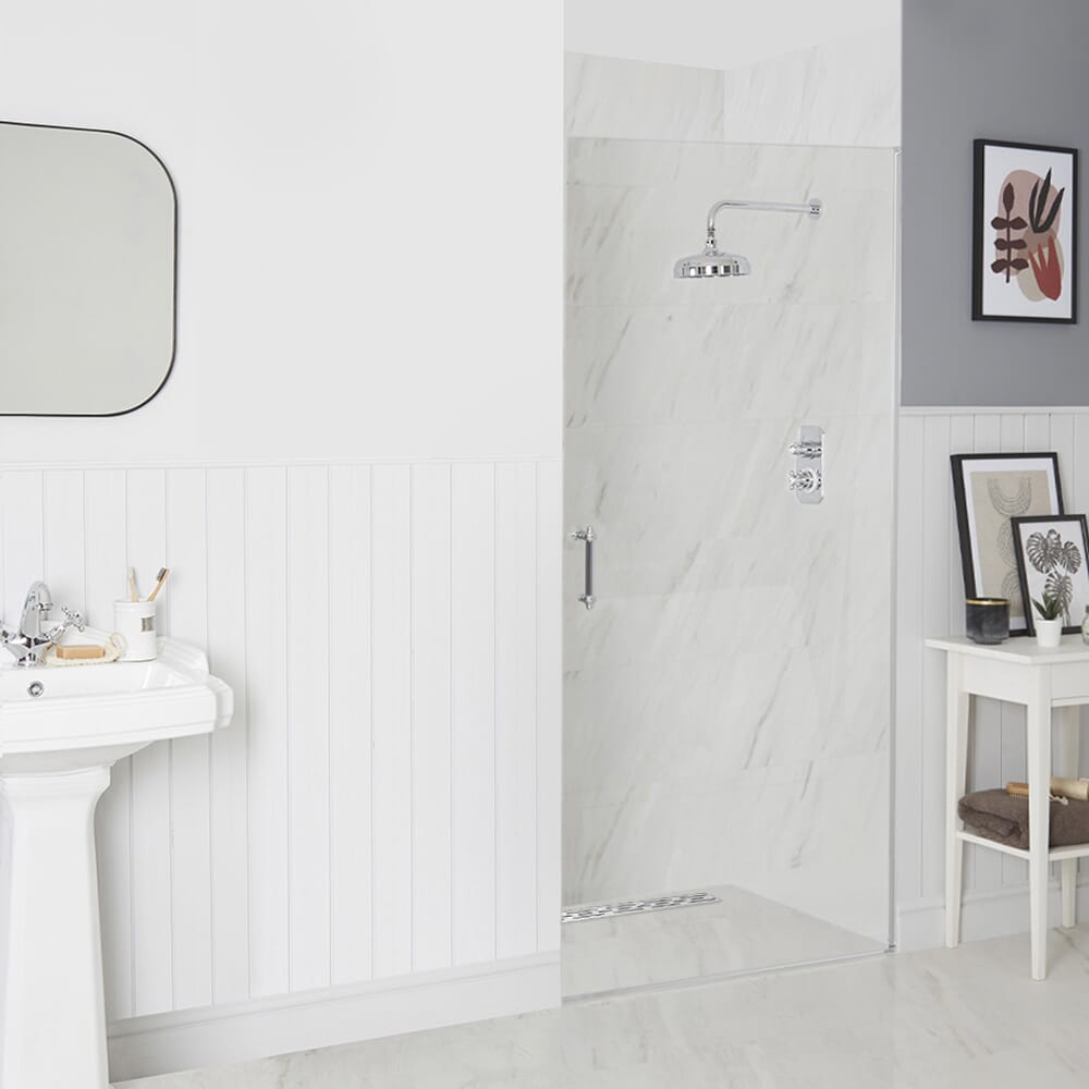 Crea uno spazio doccia minimalista con un tocco classico con la porta doccia tradizionale con anta battente Langley.