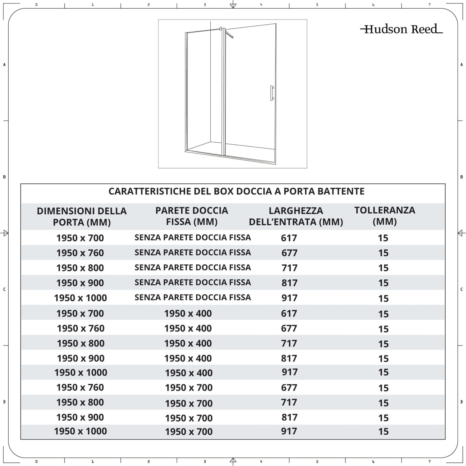 - Altezza porta doccia: 1950mm