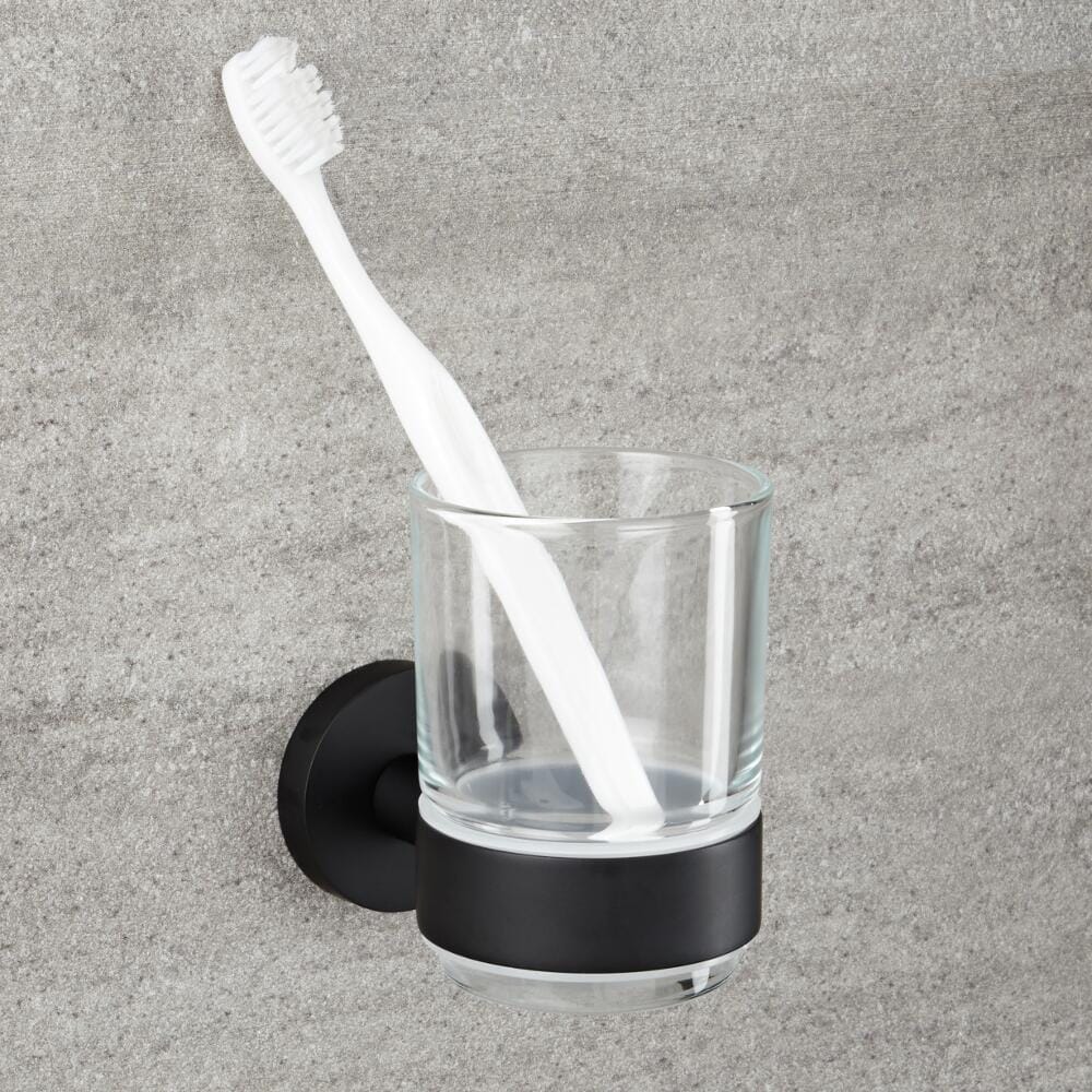 Porta Spazzolini e Porta Bicchiere da Muro Moderno Nero Opaco - Nox