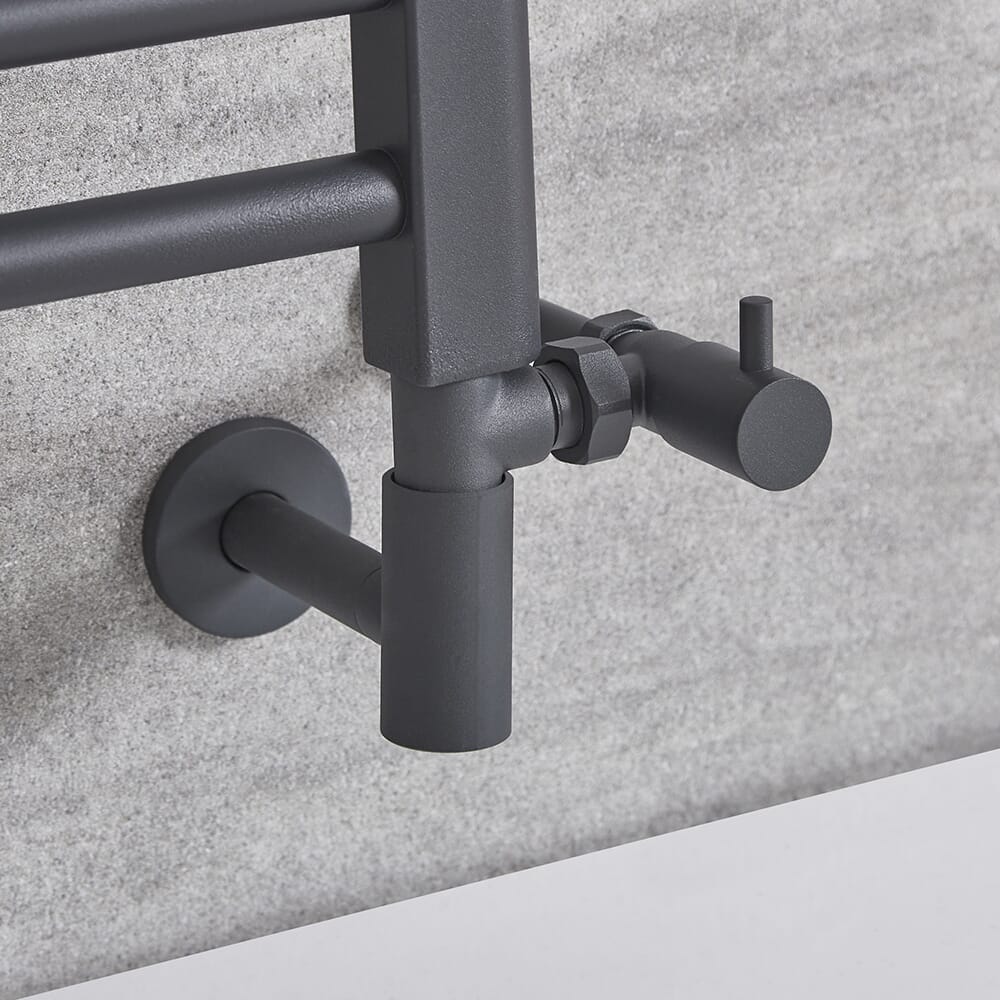 Il raccordo a T a doppio combustibile ha una finitura antracite e crea quindi un look coordinato con gli scaldasalviette oro satinato Hudson Reed.