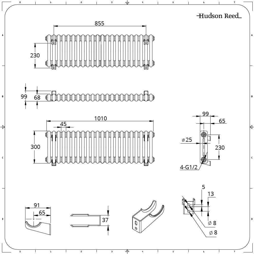 Radiatore a Colonna Orizzontale Tradizionale - Pannello Doppio - Bianco - 300mm x 1010mm - Regent