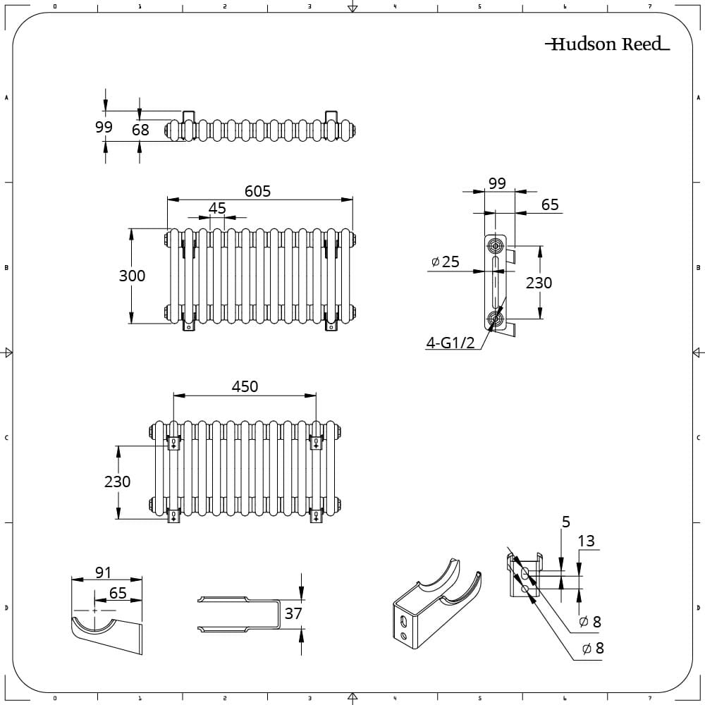 Radiatore a Colonna Orizzontale Tradizionale - Pannello Doppio - Bianco - 300mm x 605mm - Regent