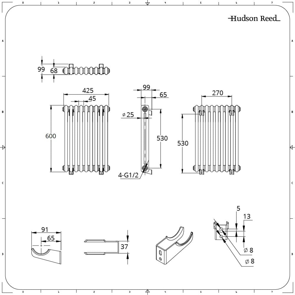 Radiatore a Colonna Orizzontale Tradizionale - Pannello Doppio - Bianco - 600mm x 425mm - Regent