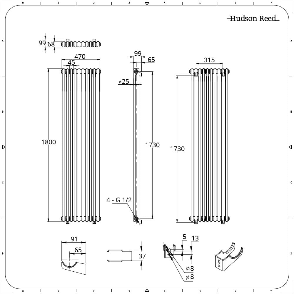 Radiatore a Colonna Verticale Tradizionale - Pannello Doppio - Bianco - 1800mm x 470mm - Regent