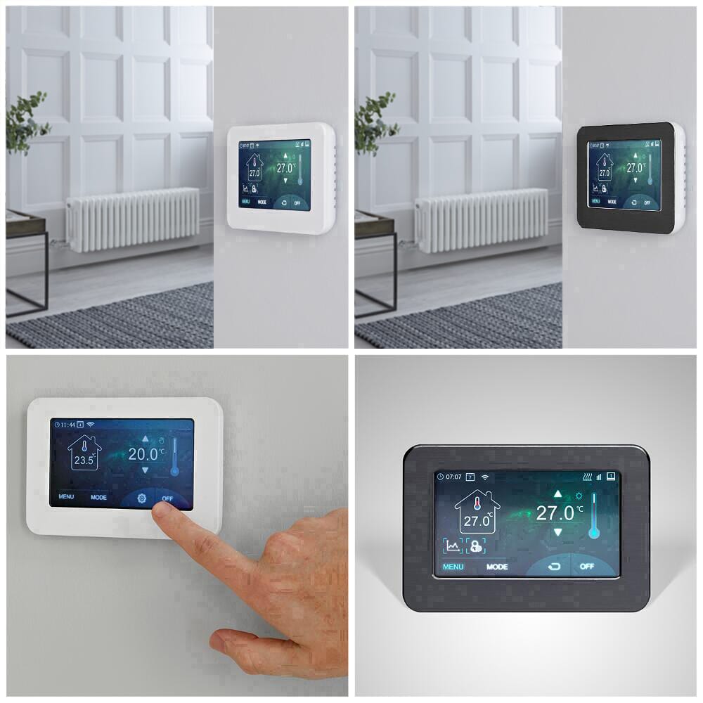 Il termostato Wi-Fi è disponibile con e senza touchscreen a seconda dell’opzione selezionata. È compatibile con Google Home e Amazon Alexa e l’applicazione Smart Life che consente di configurare le impostazioni di diversi utenti, controllare diverse zone (controllo multi-stanza), impostare diversi orari di funzionamento, in modo da poter creare uno spazio accogliente e riscaldato in ogni momento e dal tuo cellulare o tablet tramite l’app. Inoltre, ti aiuta a risparmiare energia e ridurre le bollette.