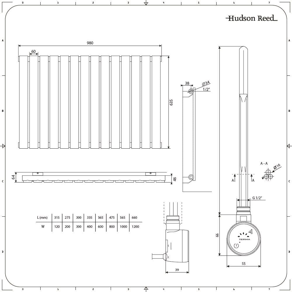 Radiatore di Design Elettrico Orizzontale - Antracite - 635mm x 980mm x 46mm - Elemento Termostatico 800W - Delta