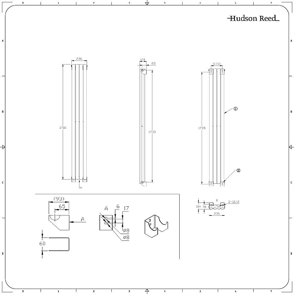 Radiatore Elettrico di Design Verticale - Antracite - 1780mm x 236mm (Doppio Pannello) - con Termostato Wi-Fi - Revive Slim - ECOSO by Hudson Reed