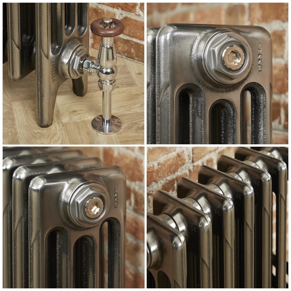 Radiatore in Ghisa a 4 Colonne - 460mm - Metallo Grezzo Lucidato - Scelta di Dimensioni - Mercury
