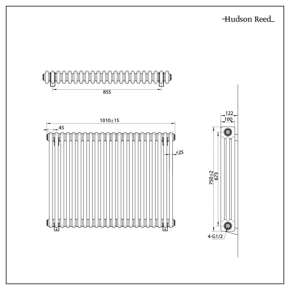 Radiatore Orizzontale Bianco Tradizionale a Tripla Colonna – 750mm x 1010mm – Bianco - Regent
