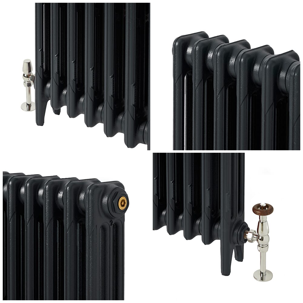 Nota Bene: A causa della natura del processo di fusione e dell’assemblaggio manuale, tutti i radiatori in ghisa presentano segni di fusione, che possono comportare leggere variazioni tra le sezioni. Queste caratteristiche conferiscono a ogni radiatore un aspetto unico e autentico.