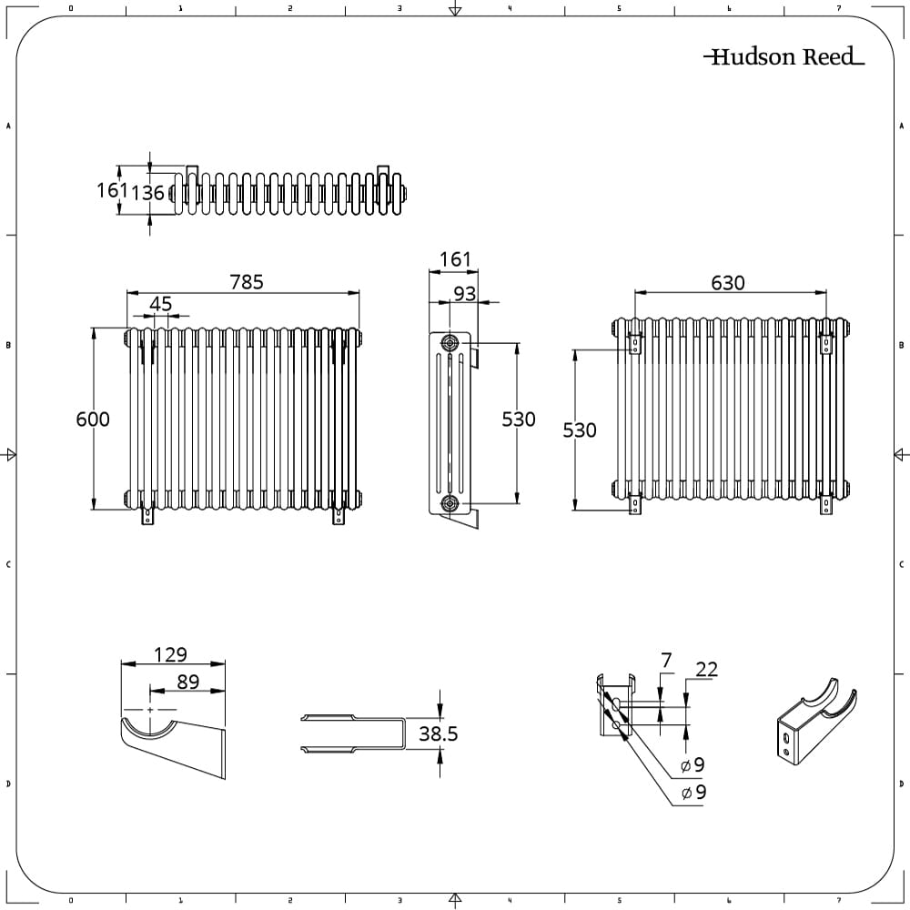 Radiatore Tradizionale Orizzontale - 600mm x 785mm - Antracite - 4 Colonne - Regent