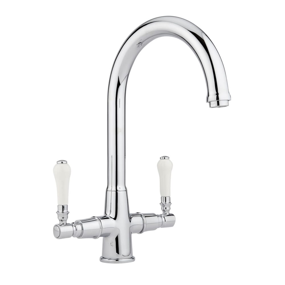 Un rubinetto miscelatore per cucina classico con becco pivotante perfetto per creare in look retro.