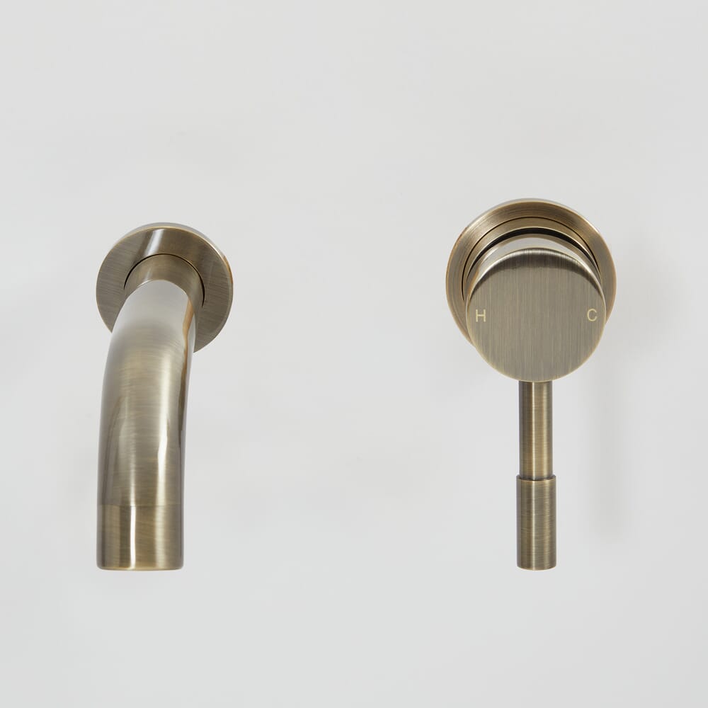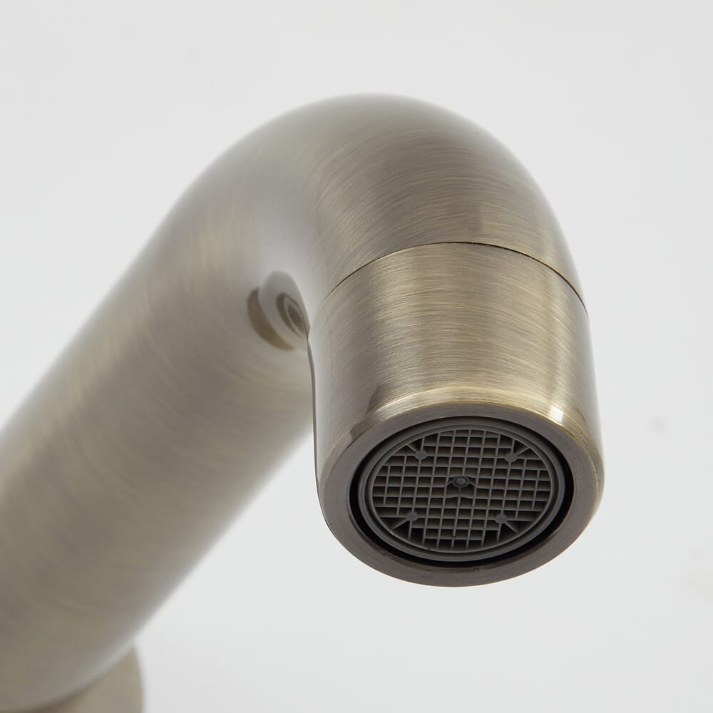 Questo accattivante miscelatore per lavabo presenta un design a parete per un look pulito e aerodinamico e una splendida finitura ottone spazzolato scuro per un tocco di eleganza. L'impugnatura a leva offre un controllo del flusso e della temperatura dell’acqua, mentre la solida struttura in ottone garantisce una lunga durata.