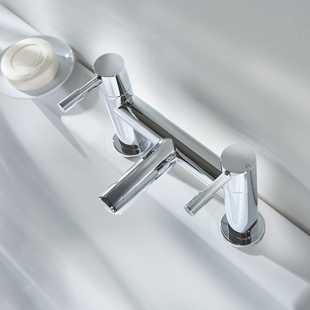 Realizzato in ottone per una sensazione di qualità e una lunga durata, questo miscelatore per vasca presenta linee curve eleganti e maniglie a leva facili da usare per un controllo senza sforzo.