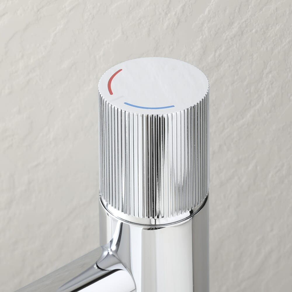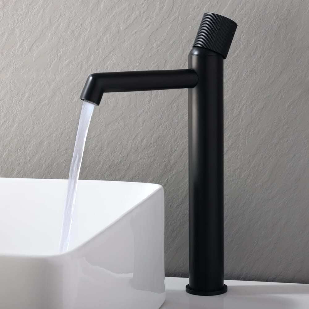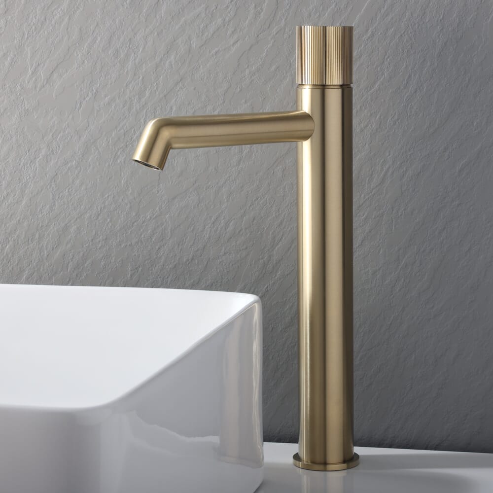 Con una struttura in ottone massiccio per resistenza e durata eccellenti, questo rubinetto per lavabo presenta un design alto, che lo rende perfetto per l'abbinamento con un lavabo da appoggio. Ha anche una maniglia a coste per un controllo semplice del flusso e della temperatura.