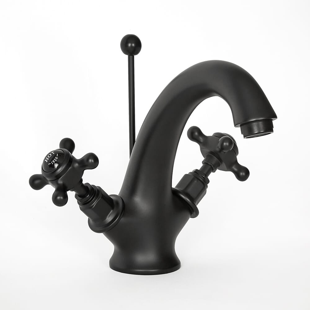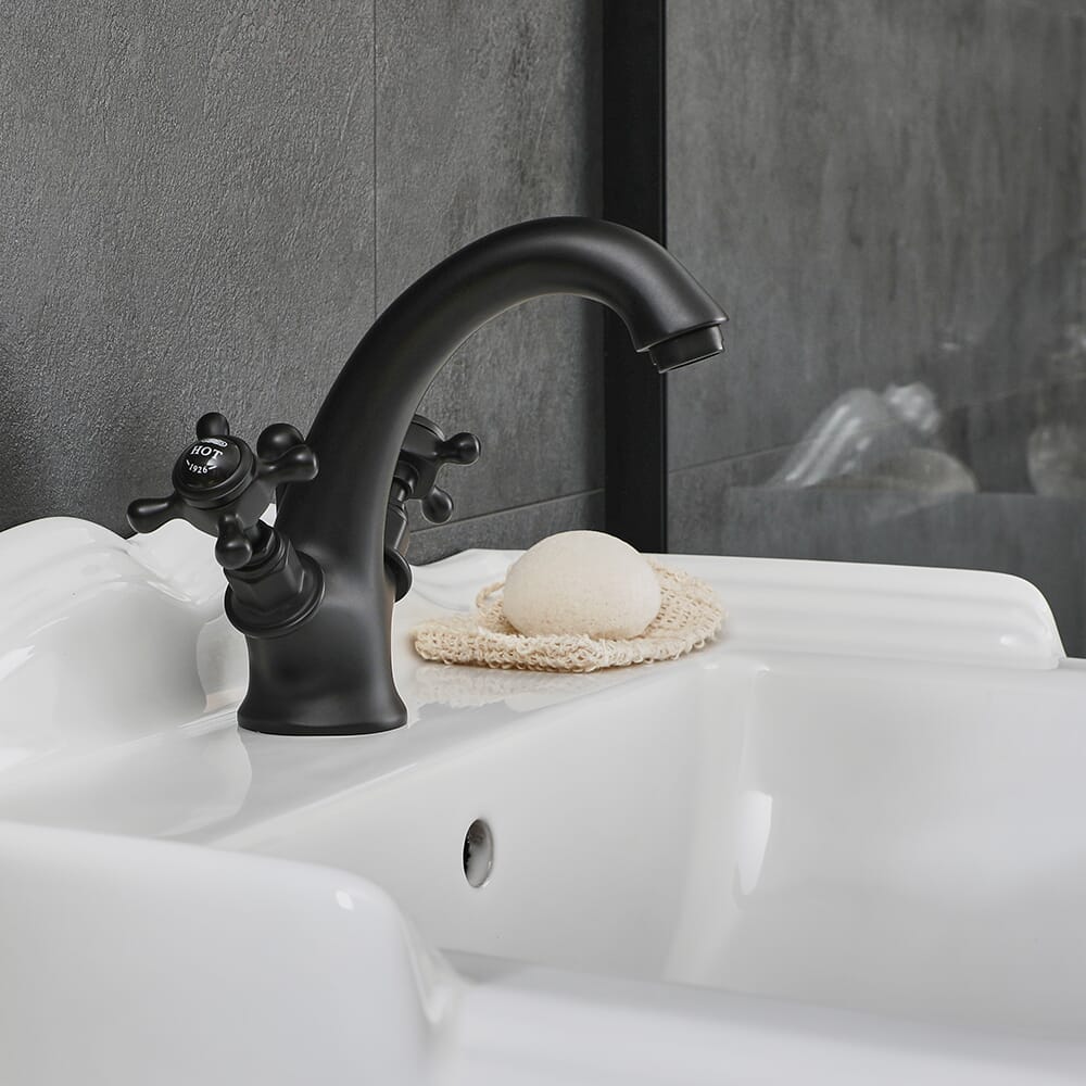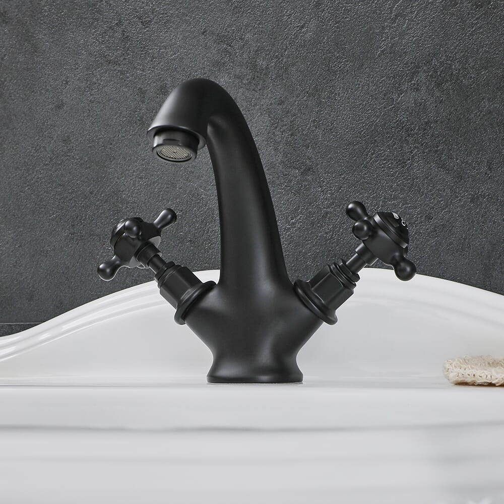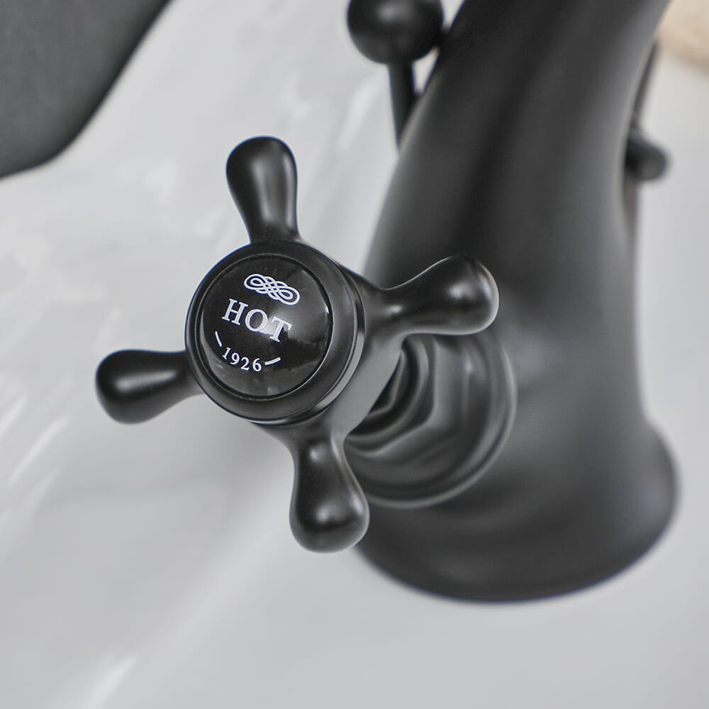 Rubinetto Miscelatore Monoforo per Lavabo con Maniglie a Croce - Nero - Elizabeth