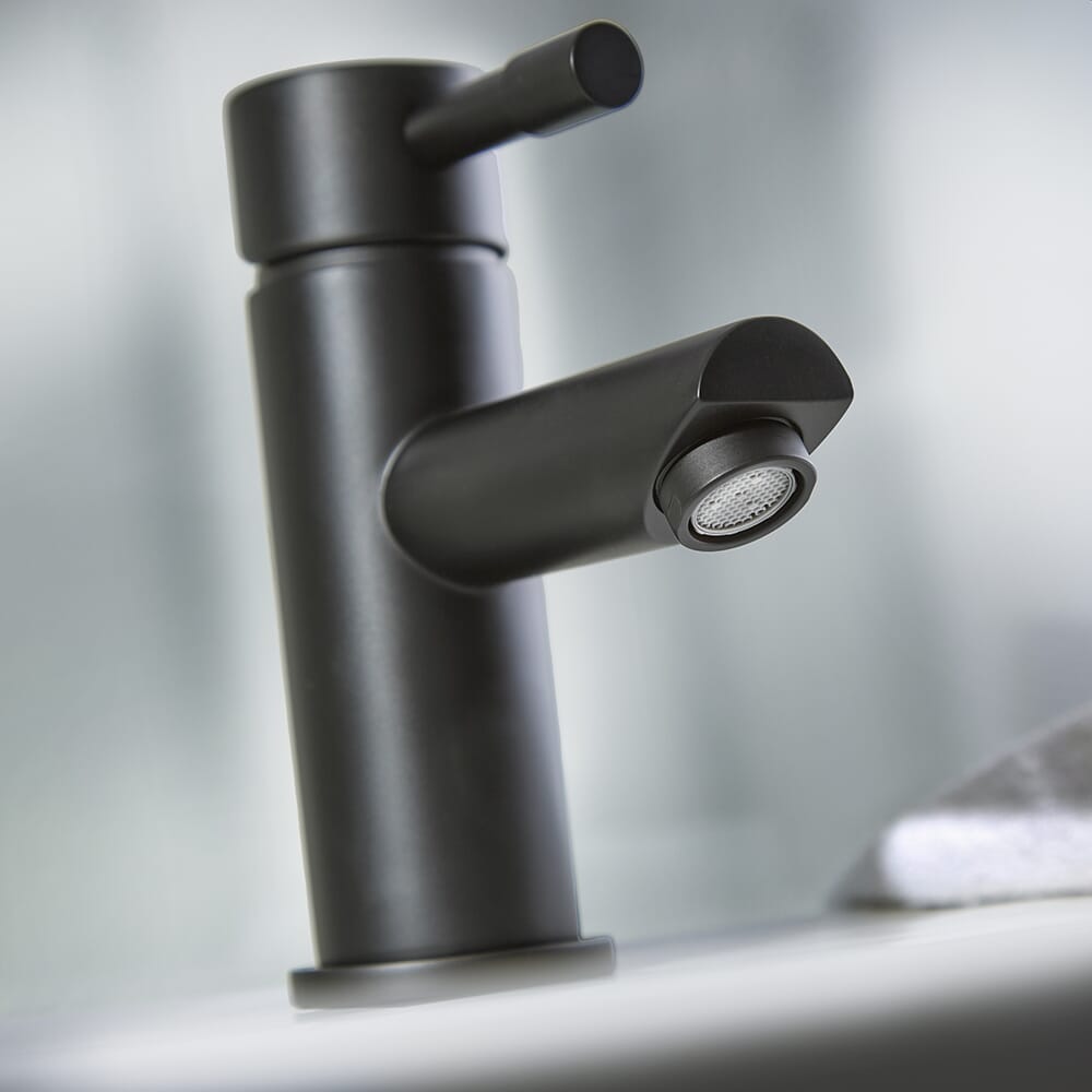Realizzato in ottone per garantire una lunga durata, questo rubinetto miscelatore per lavabo presenta una finitura nera opaca ideale per bagni arredati in stile contemporaneo. Viene fornito completo di dischi ceramici per prevenire perdite e gocciolamenti. La leva monocomando controlla la temperatura e la portata dell'acqua allo stesso tempo.