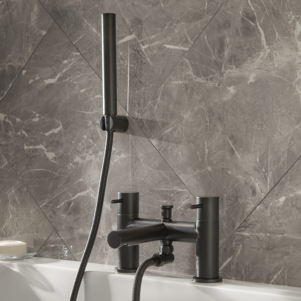 Dai al tuo bagno un look elegante e contemporaneo con il miscelatore per vasca della gamma Otto, completo di doccetta.