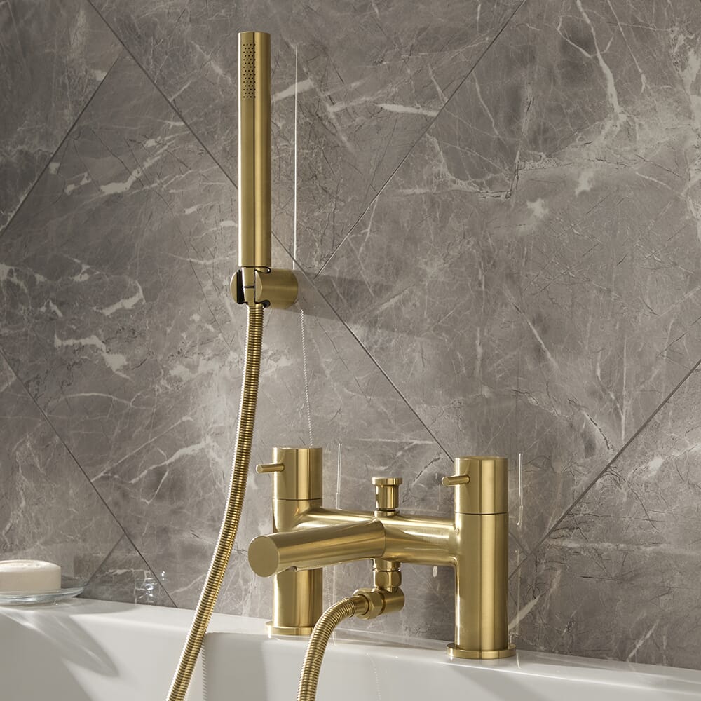 Con una solida struttura in ottone per una lunga durata, questo miscelatore per vasca da bagno unisce stile moderno e funzionalità. Presenta eleganti linee curve e maniglie a leva per un controllo semplice, mentre la doccetta eroga un getto d'acqua rinfrescante.