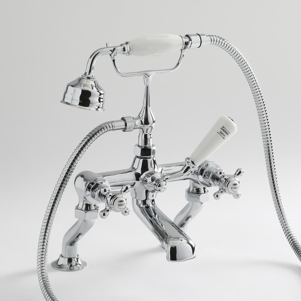 Rubinetto Miscelatore Vasca Design Tradizionale Finitura Cromata e Bianca con Maniglie a Croce - Elizabeth