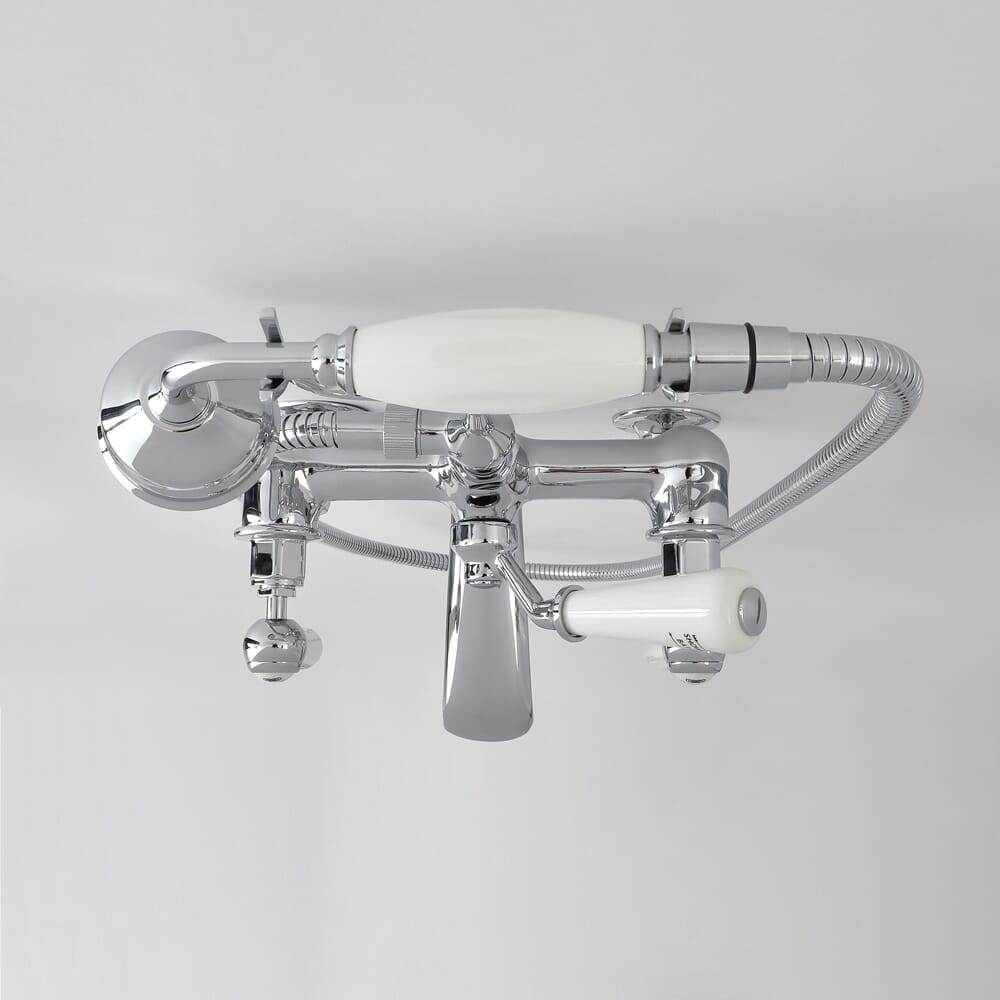Progettato per essere abbinato con vasche classiche, assicura creare un look tradizionale nella stanza da bagno che non passerà mai di moda. Il kit viene completo di miscelatore murale, doccetta e flessibile doccia.