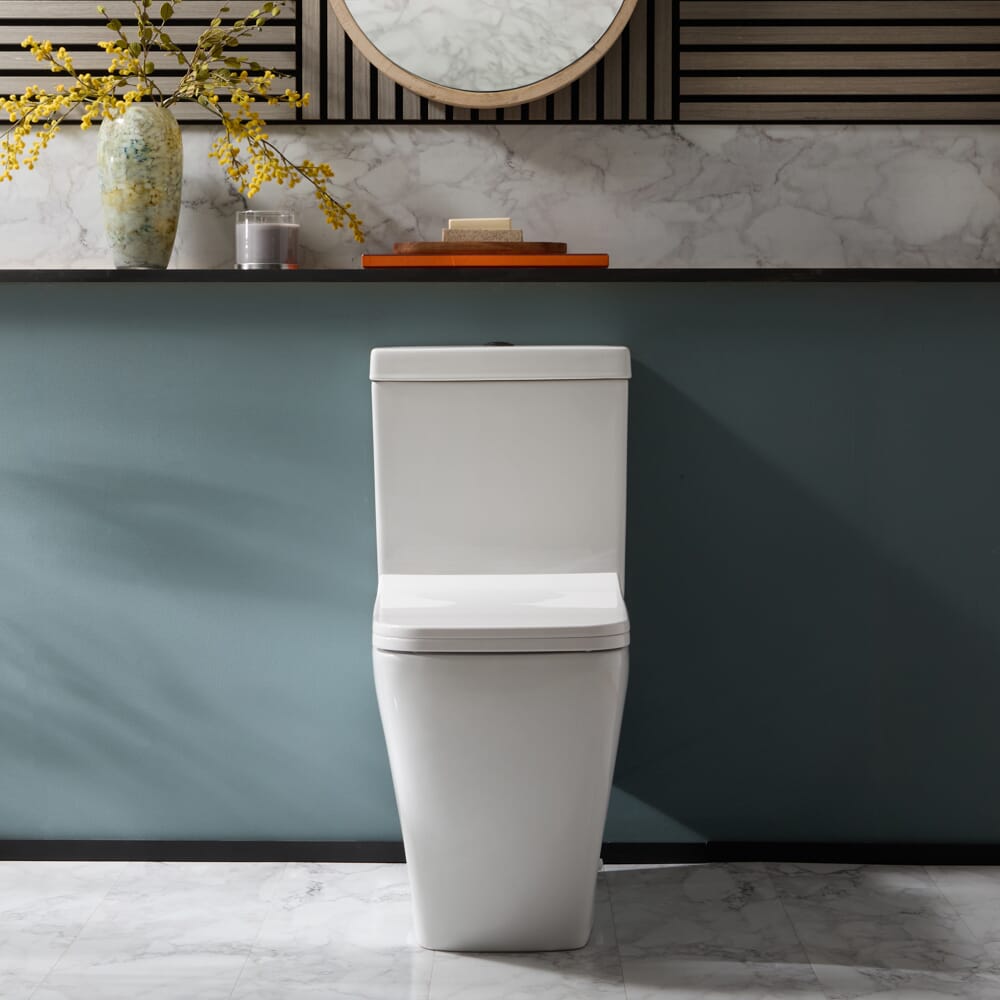 Introduci un'atmosfera contemporanea nel tuo bagno con il sanitario Milton, completo di cassetta con doppio pulsante di scarico a risparmio idrico e sedile con chiusura ammortizzata.