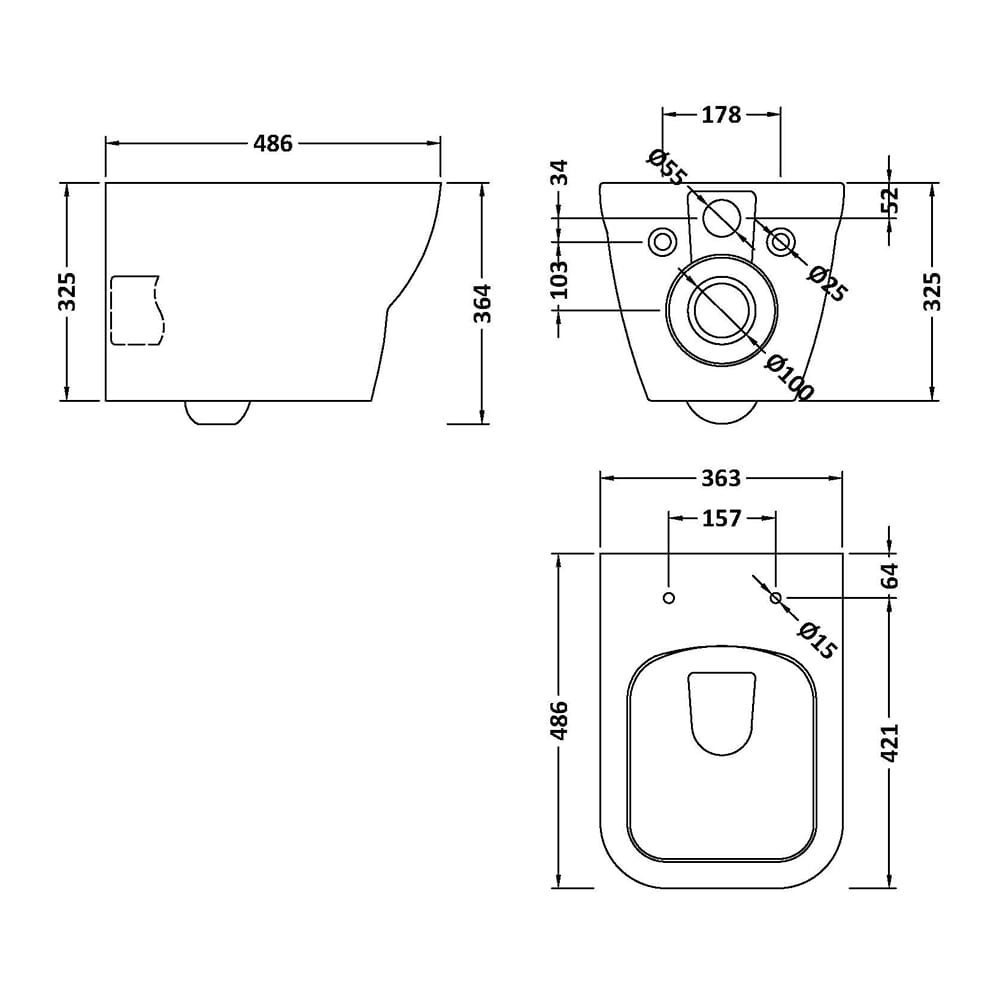 Sanitario Sospeso Moderno Quadrato senza Brida con Sedile a Chiusura Ammortizzata - Hudson Reed