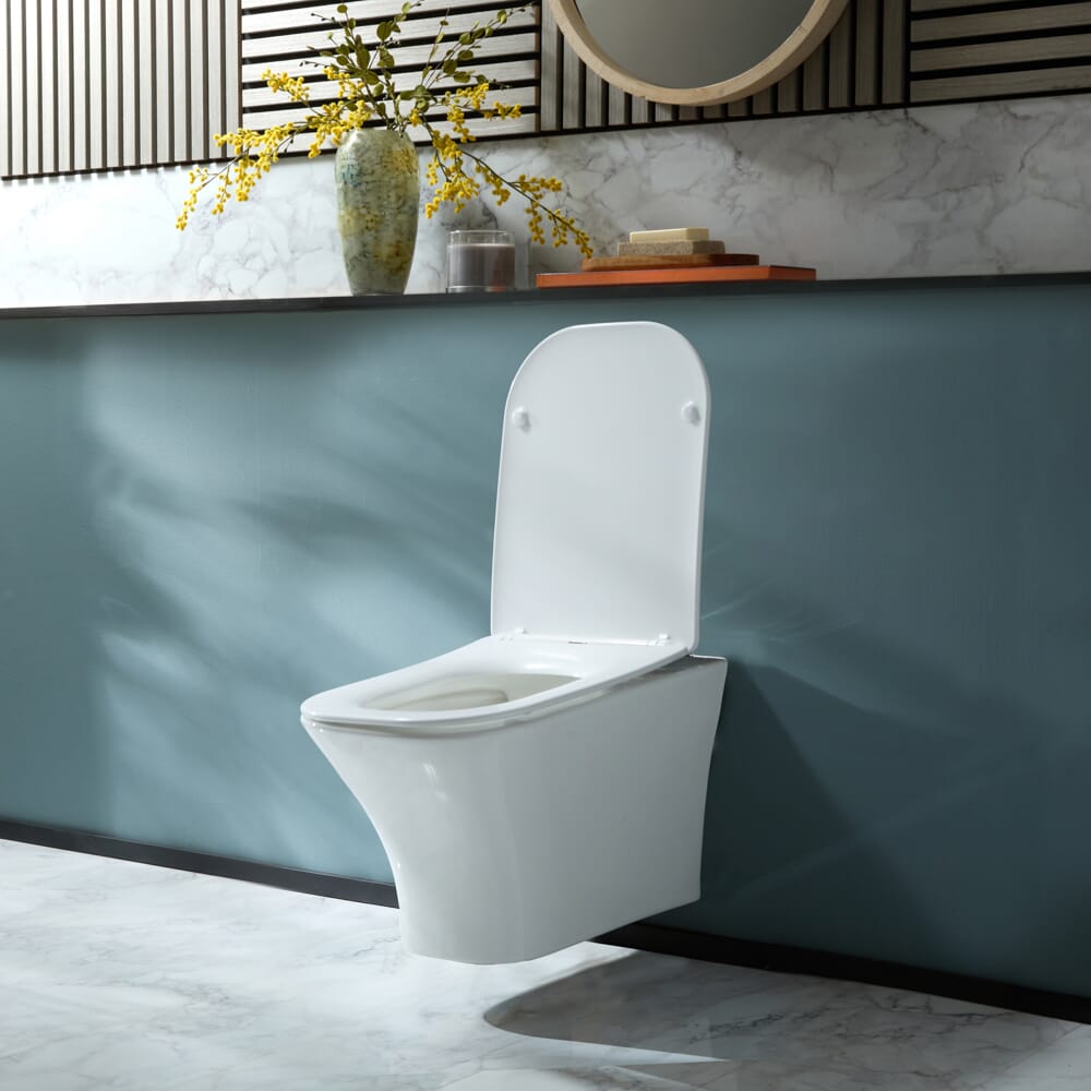 Migliora il senso di spazio nel tuo bagno con il moderno sanitario WC sospeso Avenham, completo di sedile con chiusura ammortizzata.