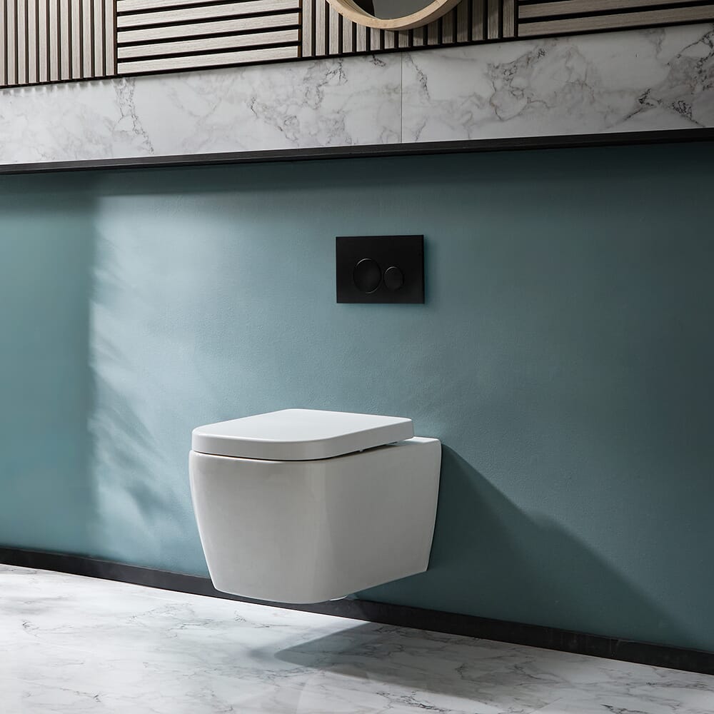 Porta uno stile minimalista di design nel tuo bagno e aumenta il senso di spazio con il WC sospeso Milton completo di telaio di fissaggio e sedile con chiusura ammortizzata.