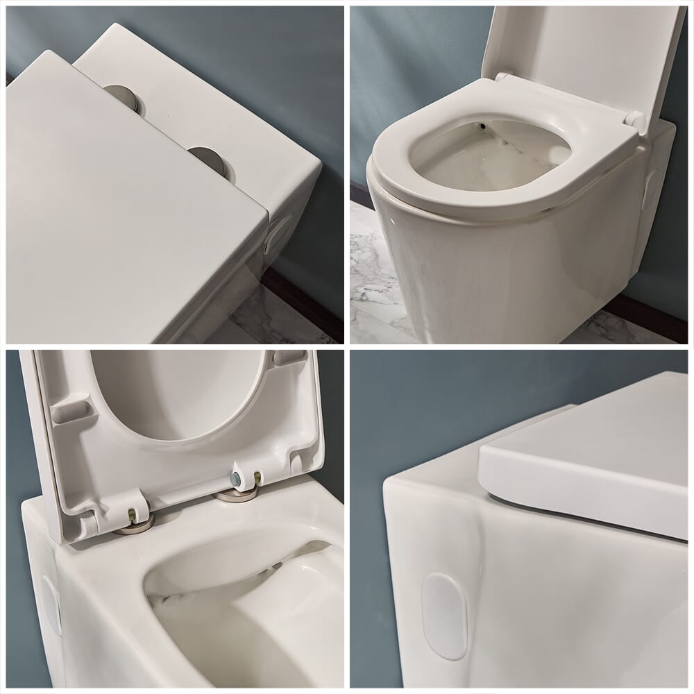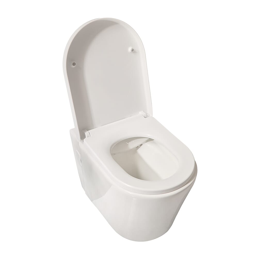 Il sanitario è caratterizzato da un design senza bordi, il che significa che non c'è bordo attorno all'interno della tazza del water dove si accumulano germi, consentendo una pulizia notevolmente più semplice e un'igiene migliore. È stato realizzato in ceramica di prima qualità e rifinito con una resistente vernice bianca facile da pulire.