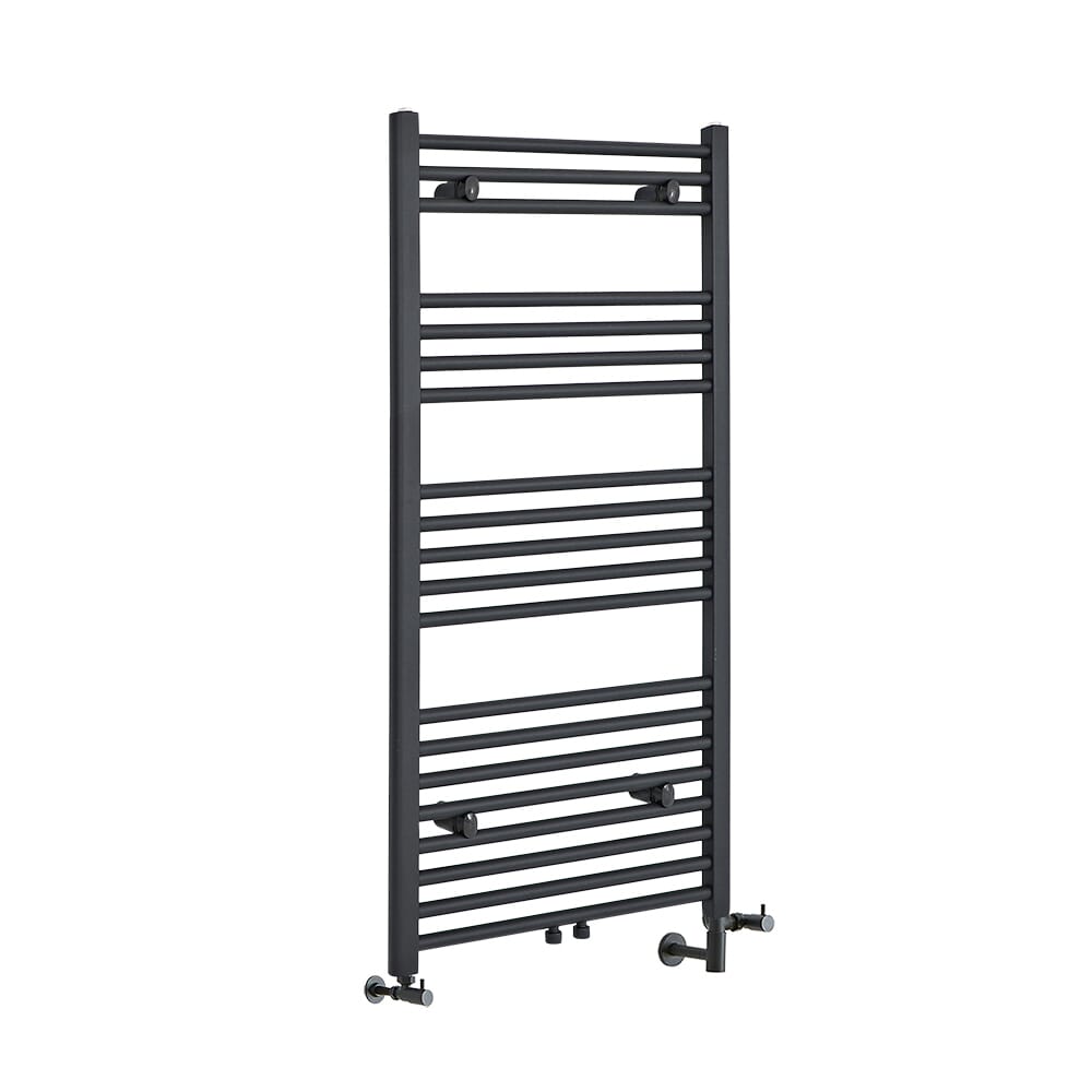 Scaldasalviette Misto Antracite Piatto - 1188mm x 500mm - incl. 600 Watt Elemento Riscaldante, Raccordo a T e Valvole - Neva