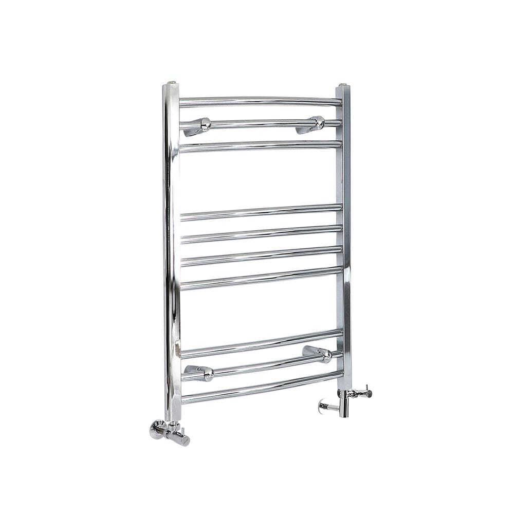 Scaldasalviette Misto Cromato Curvo - 800mm x 500mm - incl. 300 Watt Elemento Riscaldante, Raccordo a T e Valvole - Kent
