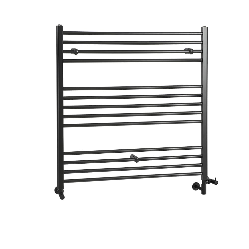 Scaldasalviette Misto Matt Nero Piatto - 1000mm x 1000mm - incl. 800 Watt Elemento Elettrico Riscaldante, Raccordo a T e Valvole - Nox